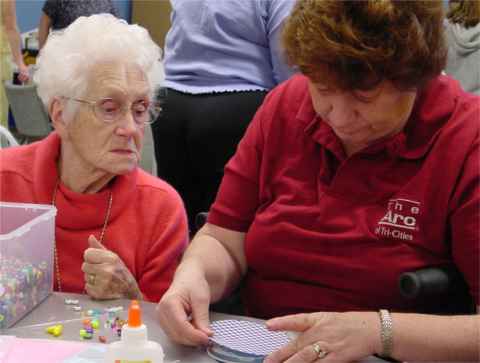 The director of ARC of Tri-cities participated in the crafts with her mother during the Autism Awareness Fair |