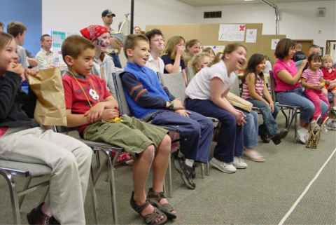The greatest pleasure I had was watching the children's spontaneous joyful responses to the antics of the clowns. |