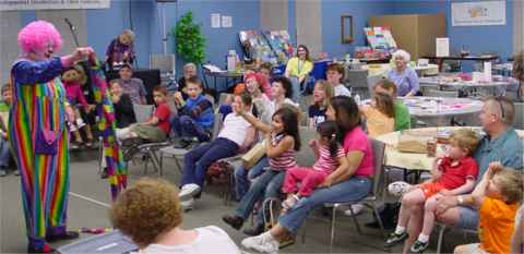 Clowns delighted the audience with special magic and slight of hand tricks. |