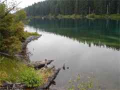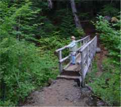 We took the five mile hike around Clear Lake, going counter clockwise as is our habit. The bridge over the McKenzie is one huge log. | ![]() |
