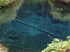 The source of the McKenzie river. The turquoise-blue color of the pool is caused by light reflecting off many generations of dead fresh water plants called diatoms that cover the bottom. | ![]() |