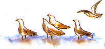 The Captain yelled, "Throw the toaster down." The toaster went splashing into the shiny blue water and gurgled to the bottom. "Where is my toast?" asked the Captain. "You told us to throw the toaster down," I reminded him. "There is one thing I'm not doing for sure," said the Captain, "and that's eating salt water toast." At least it will turn to stone. "Too bad we don't have any fish," squawked a gull, "instead we will eat the cooler." "Yikes," yelled the Captain, "What about the leak? Put the emergency plug in it." "We lost the emergency plug." "Stuff the birds in it." "No," said the birds. "But we have to," said the Captain. So I stuffed a gull in the hole. "Squawk! Squawk," gurgled the bird. And it made the hole bigger. "We're doomed," yelled the Captain. "Get into the life boat." I yelled to pack the food. The birds went after the life boat. The Captain yelled, "If they peck the life boat, we'll sink to the bottom." "Throw them some food," said Nancy. "Thanks," squawked the gulls. "Bye," whispered Nancy and the Captain zoomed them away. "They're trying to escape," squawked a gull with its mouth stuffed. The Gulls flew after the life boat. "Luckily we have a motor," said the Captain and they zoomed to the shore. "Not so fast," squawked the birds. "Quick! Into the sand," commanded the Captain. "We'll dig our way to the resort." "I hope the clams don't pinch us," said Morgan. Nancy said, "Maybe we could just play cards instead of digging." "How do you suppose you could get away playing cards?" laughed the gulls. "You'll see," said Nancy. "I hope its a trick to make fish," said a fat gull. "Close your eyes," Nancy ordered. We all quickly jumped into the sea and got away and dug our way to the resort. When suddenly the gulls opened their eyes they saw us run into the hotel. "I see an open window," spied a gull. The gulls all flew in the open window. Luckily it was not the window in our room and we made our escape safely.